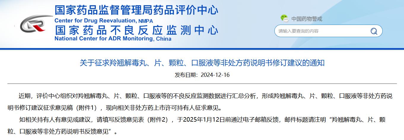 關于征求羚翹解毒丸、片、顆粒、口服液等非處方藥說明書修訂建議的通知