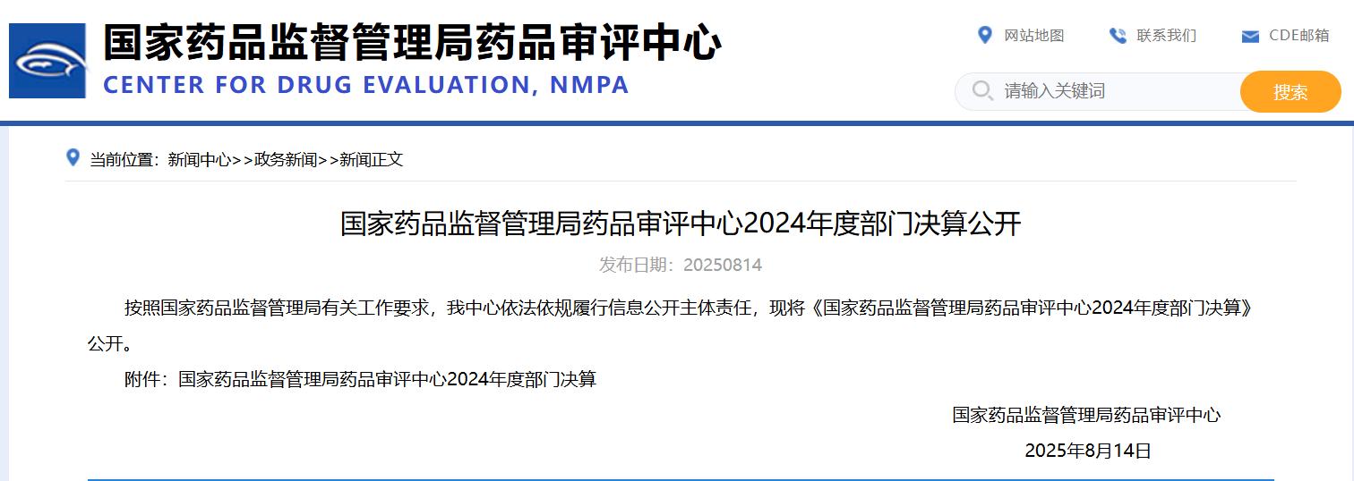 國家藥品監督管理局藥品審評中心2024年度部門決算公開