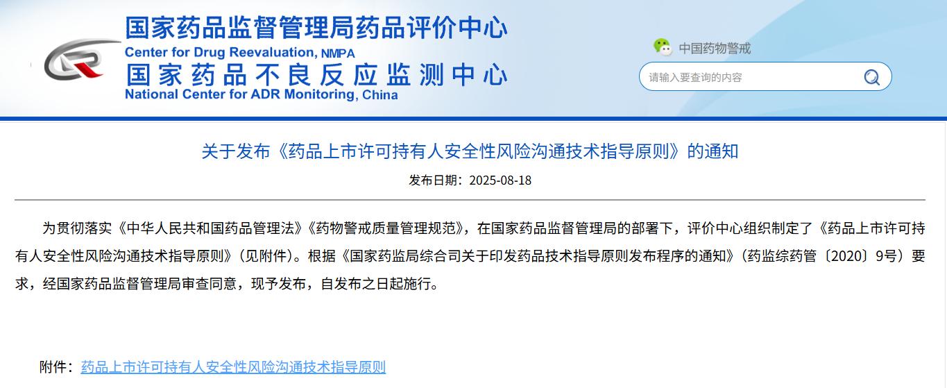 關(guān)于發(fā)布《藥品上市許可持有人安全性風(fēng)險(xiǎn)溝通技術(shù)指導(dǎo)原則》的通知