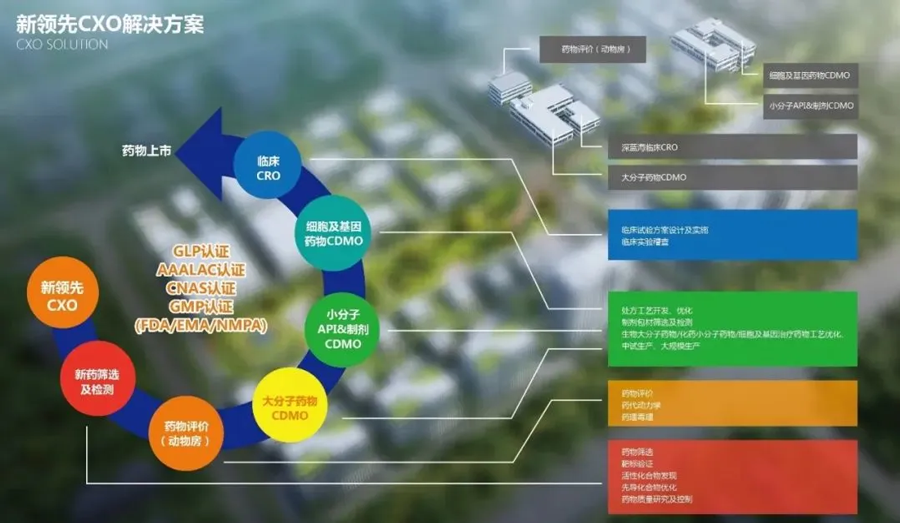 在這種背景下,新領(lǐng)先開創(chuàng)了行業(yè)獨(dú)特的CXO一體化服務(wù)模式,面向全球提供從藥物研發(fā)臨床前CRO、臨床CRO至創(chuàng)制生產(chǎn)CDMO的醫(yī)藥研發(fā)制造全產(chǎn)業(yè)鏈服務(wù)。