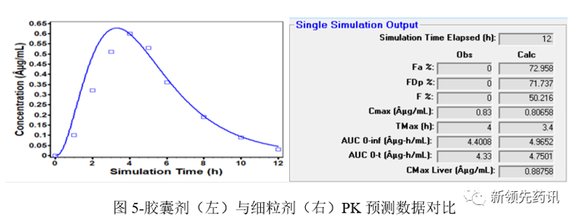 同理,采用Gastroplus軟件,對膠囊劑和細粒劑不同的體外溶出行為,建模進行預測,結果如下: