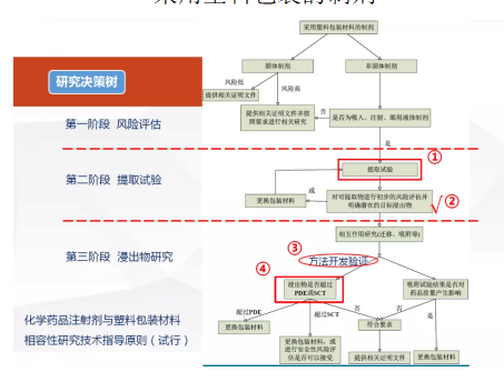 同時(shí),結(jié)合不同給藥途徑的風(fēng)險(xiǎn)分級(jí)以及制劑與包裝組件發(fā)生相互作用的可能性進(jìn)行評(píng)估,來(lái)確定最終的研究方案。