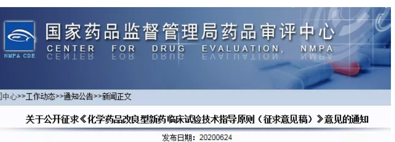 2020年6月24日,國家藥品監督管理局藥品審評中心公布了《化學藥品改良型新藥臨床試驗技術指導原則(征求意見稿)》,不到5000字的內容,卻蘊含巨大的信息量。