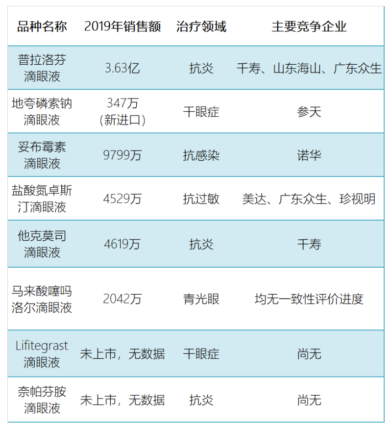 ▲眼科用藥品種清單與重點(diǎn)品種