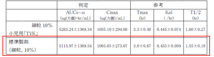 藥動學數據,其中紅框內的數據為細粒劑標準制劑的藥動學參數: