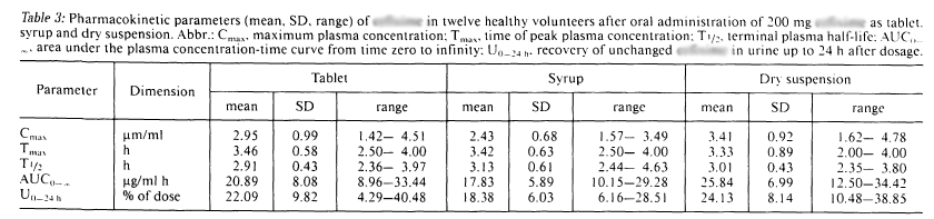 上表給出了給藥劑量均為200mg的前提下,片劑、糖漿、干混懸劑之間的藥動學參數對比,由于糖漿劑劑型比較復雜,受糖漿粘度影響,可能影響體內吸收,暫不做考慮,單純對比片劑以及干混懸劑的藥動學參數,如下: