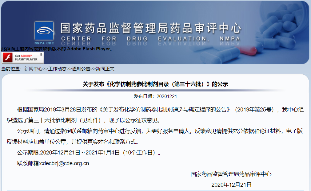 關于發布《化學仿制藥參比制劑目錄(第三十七批)》的公示