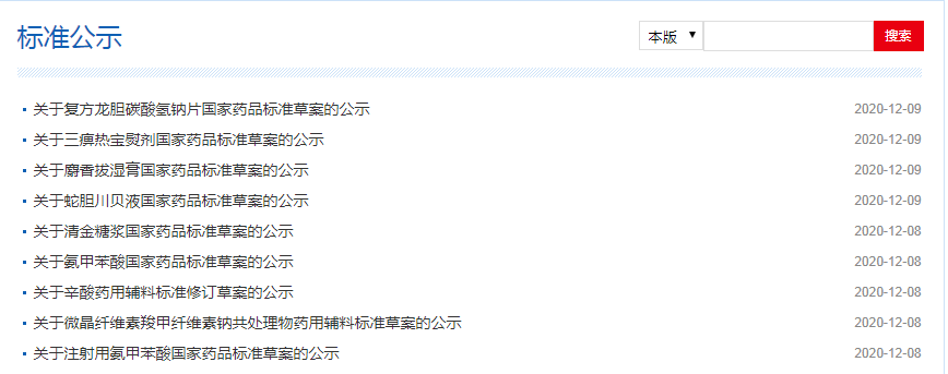 本周氨甲苯酸等9個品種國家藥品標準草案公示。