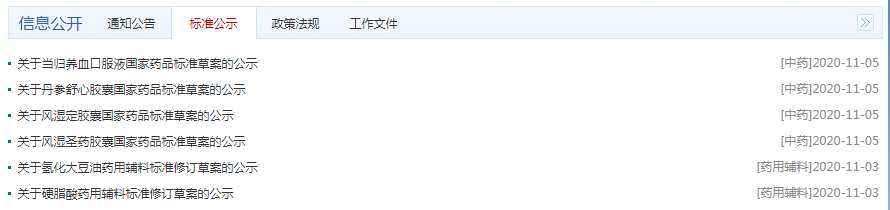 關于當歸養血口服液、丹參舒心膠囊、風濕定膠囊、風濕圣藥膠囊、氫化大豆油、硬脂酸,藥品/輔料標準修訂草案的公示。