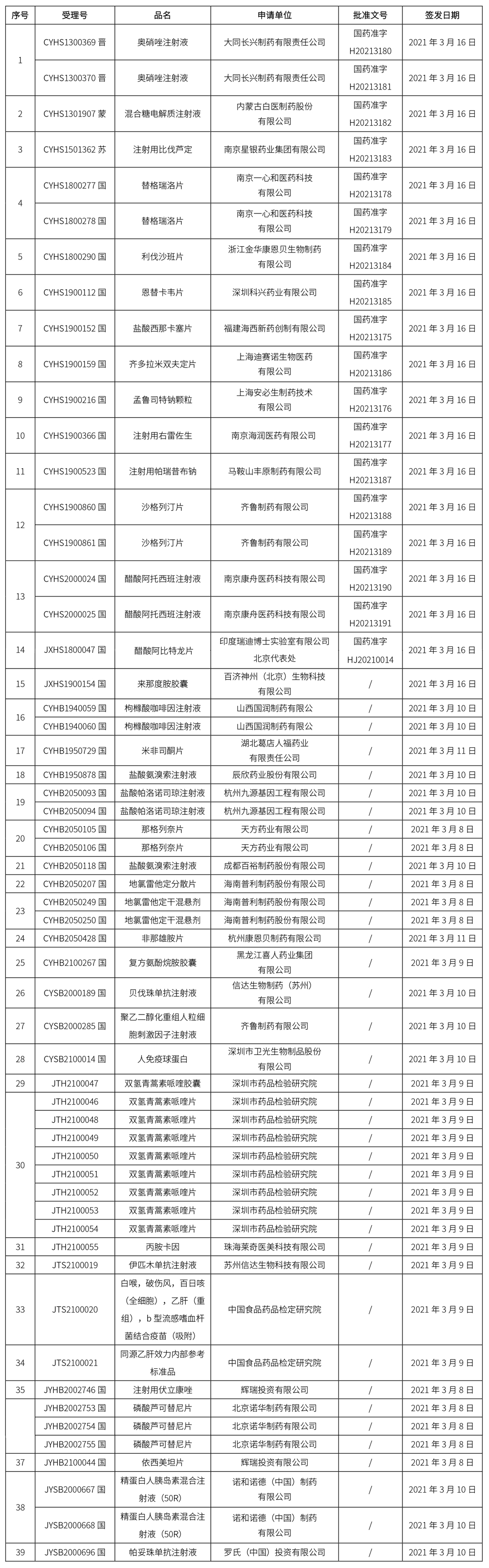 本周共發布39個品種批準證明文件待領取通知,其中一致性評價品種8個,注射劑品種16個。