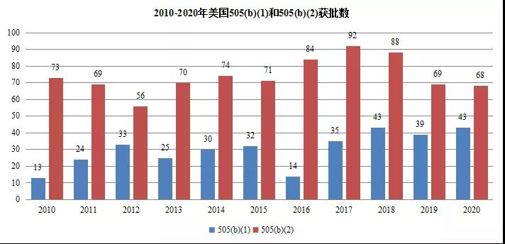 在美國市場,改良型新藥發展速度與創新藥同步,已成為美國新藥市場主力,505(b)(2)申請獲批產品數量不斷攀升,上市后銷售額引人注目。近10年美國通過505(b)(2)申請獲批的產品快速增加,2020年申請獲批的產品達68個,505(b)(2)途徑申報的新藥漸成研發主力,改良新藥已成藥物研發的主力。
