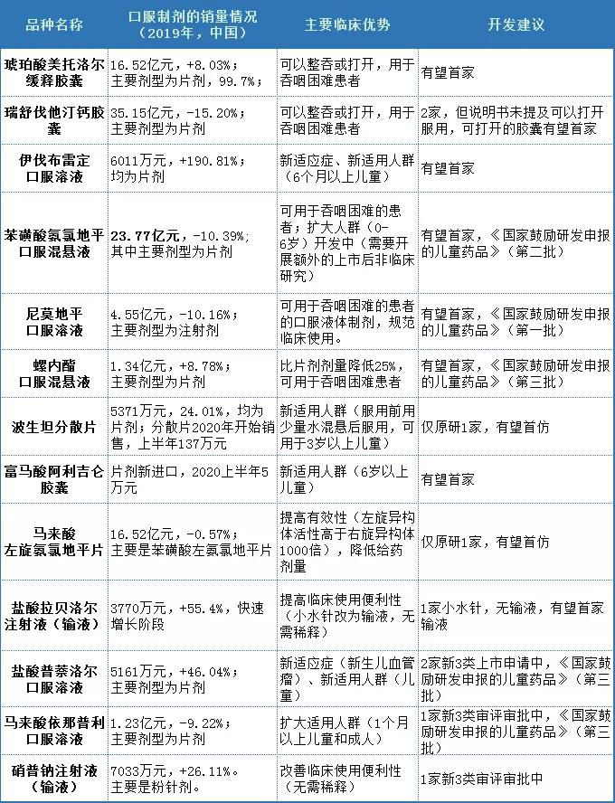 口服制劑:大多數新劑型、新制劑的品種以關注特殊人群的用藥需求為主(包括吞咽困難人群和兒童用藥);這其中,不乏對大品種的改良,例如氨氯地平、瑞舒伐他汀鈣等。