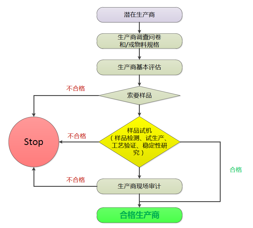 樣品的確認(rèn):新增供應(yīng)商應(yīng)進(jìn)行樣品的檢測,如有需求還應(yīng)進(jìn)行樣品小批量的試生產(chǎn),并進(jìn)行工藝驗(yàn)證和/或穩(wěn)定性考察;