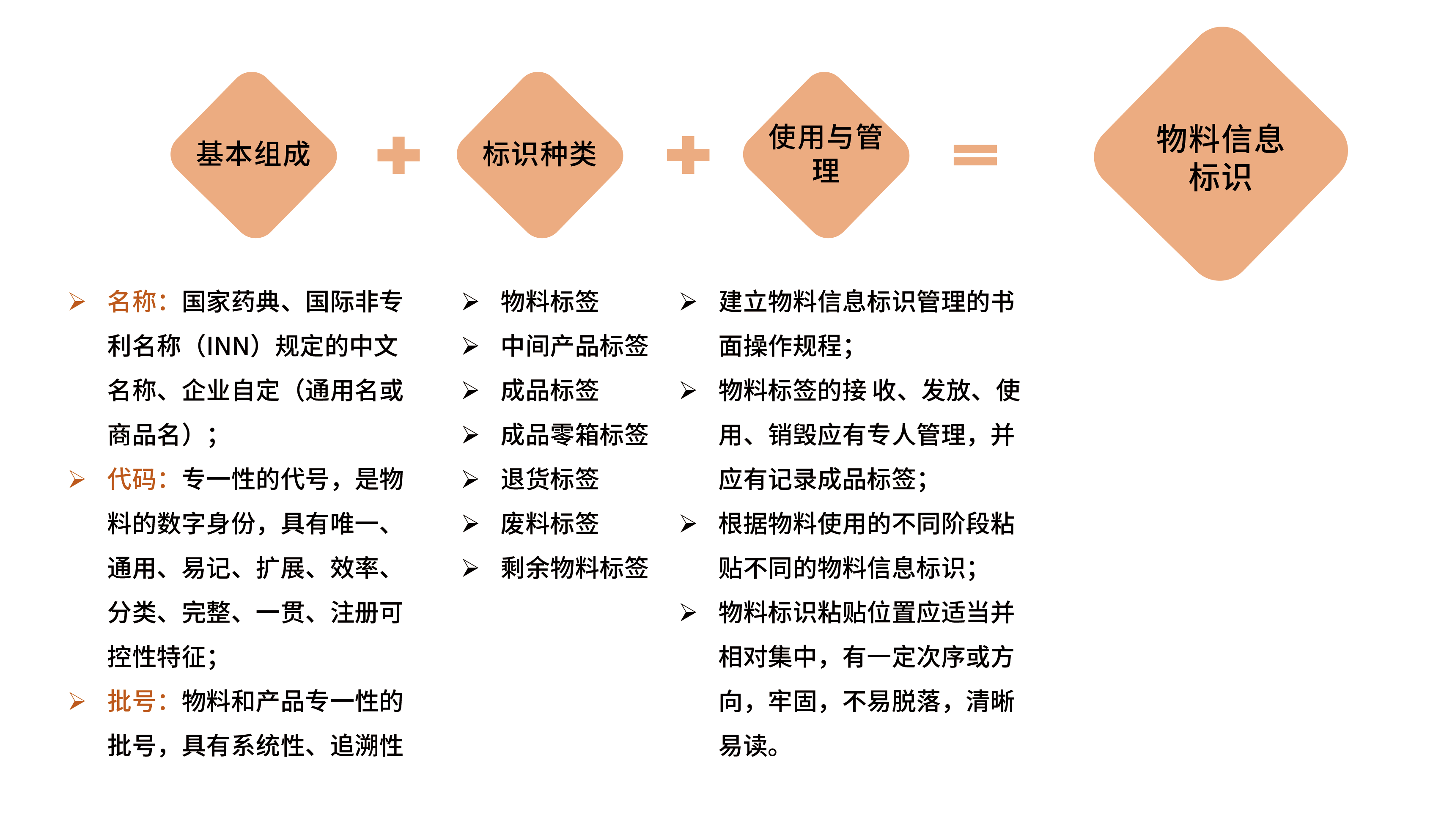 基本要求:使用物料標(biāo)識的目的在于防止混淆和差錯,從而避免物料和產(chǎn)品的污染和交叉污染。