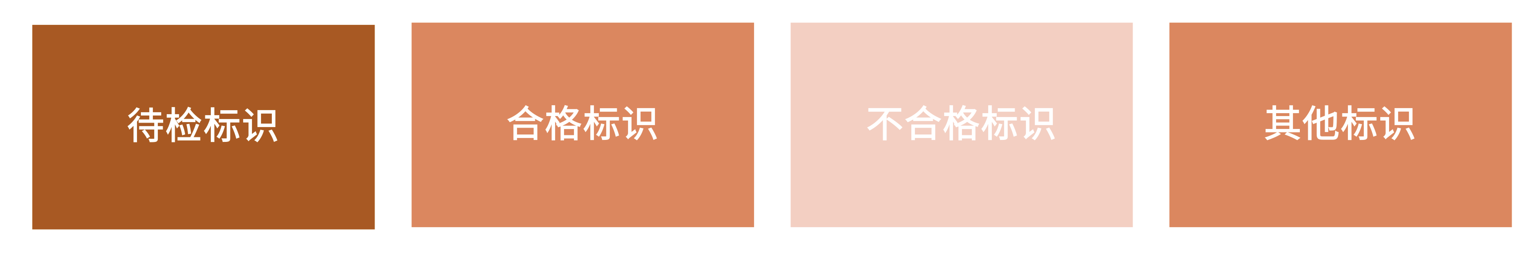 ? 不合格標(biāo)識:通常為紅色標(biāo)識,該標(biāo)識表明所指示的物料和產(chǎn)品為不合格品,不 得用于正式產(chǎn)品的生產(chǎn)或發(fā)運(yùn)銷售;需要進(jìn)行銷毀或返工、再加工。
