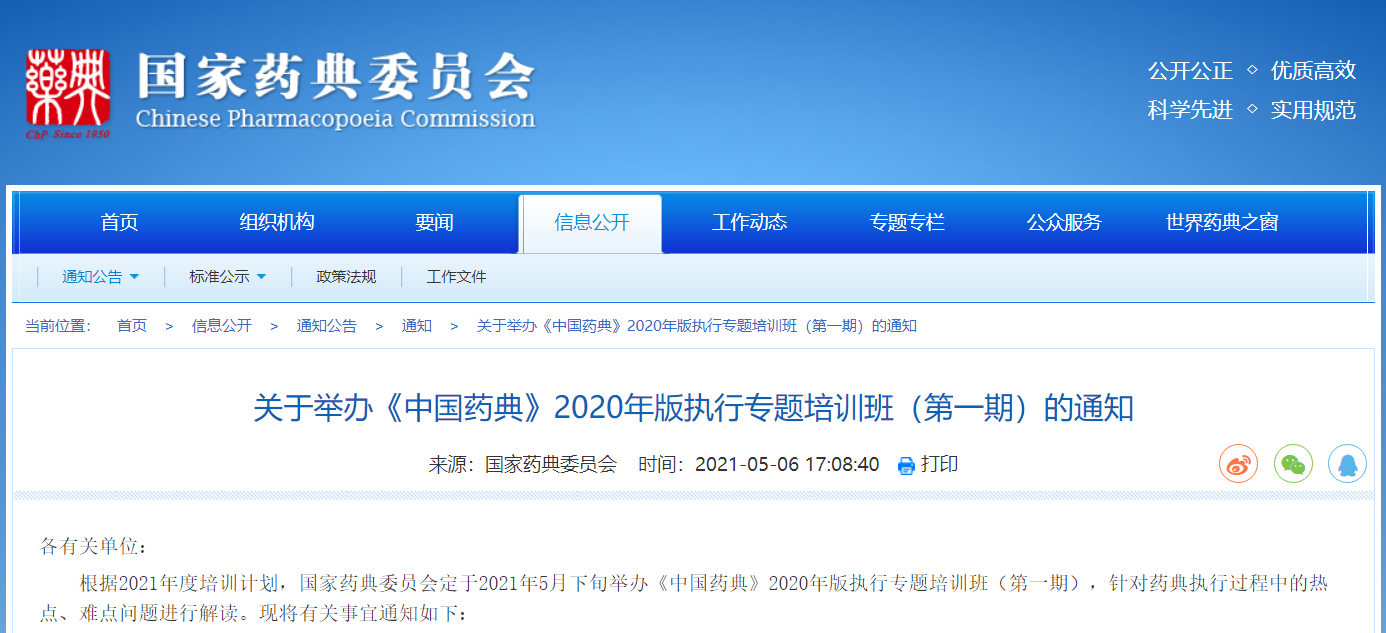 關于舉辦《中國藥典》2020年版執(zhí)行專題培訓班(第一期)的通知