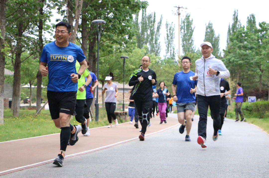 長長的賽道熄滅不了的是沖刺終點的熱情,沿途怡人的風景留下的卻是背影和汗水,縱然身心疲憊,依然向前奔跑,也許是醫藥人長在骨子里的堅韌和執著,也許是隊友陪伴激發了跑者們的熱情,身戴“醫藥天團”貼紙的選手們,成為公園中一道靚麗的風景線!