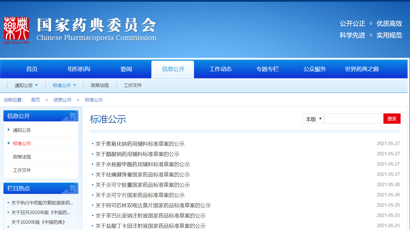 本周炎可寧片、炎可寧膠囊、阿司匹林雙嘧達莫片、苯巴比妥鈉注射液、鹽酸丁卡因注射液、祛痛健身膏國家藥品標準草案公示,水楊酸甲酯、醋酸鈉、氫氧化鈉藥用輔料標準草案公示。