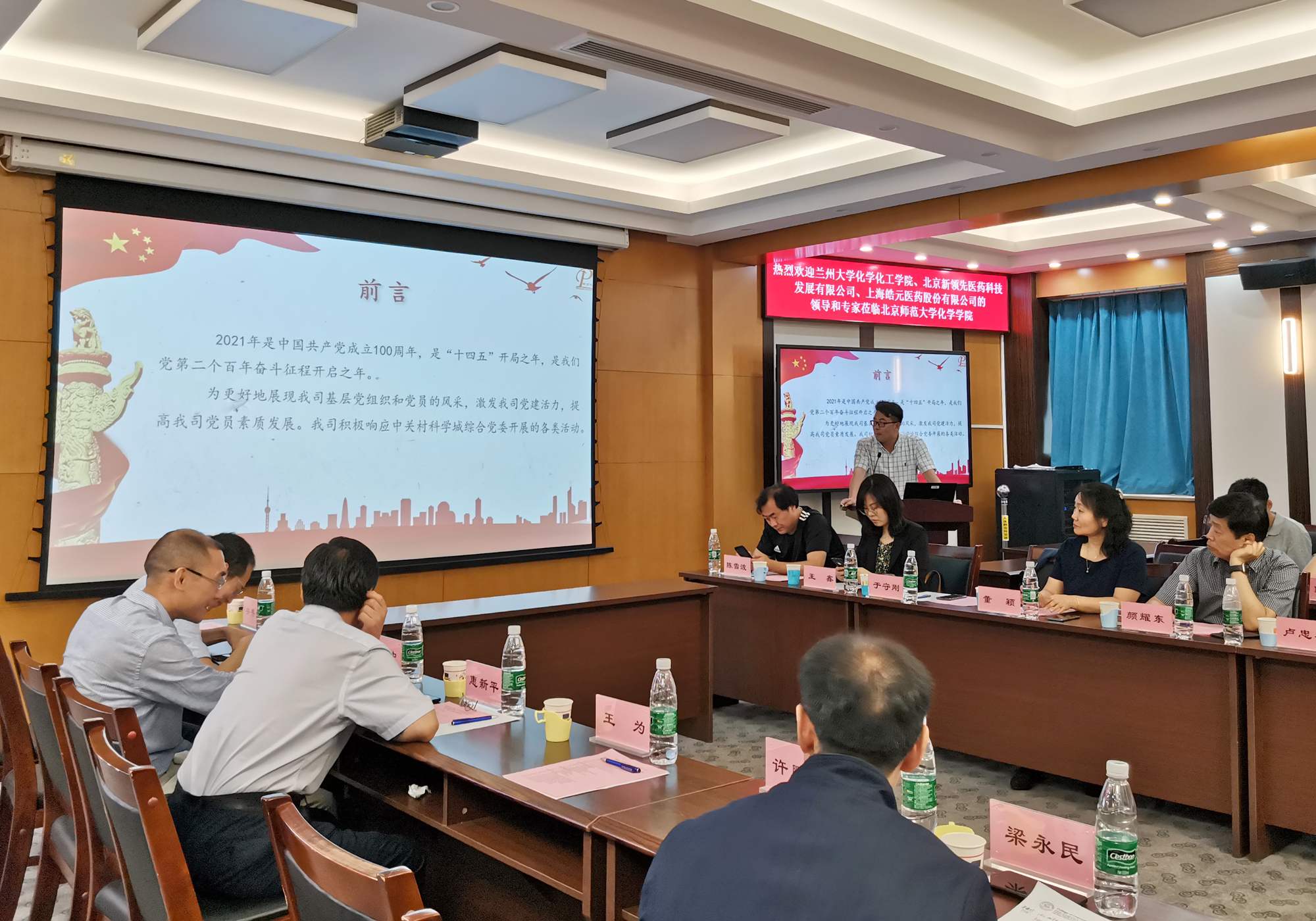 北京師范大學化學學院黨委書記盧忠林教授、院長范樓珍教授,蘭州大學校長助理和科學技術發(fā)展研究院執(zhí)行院長許鵬飛教授、化學化工學院院長梁永民教授、功能有機分子化學國家重點實驗室主任王為教授,北京新領先醫(yī)藥董事長陶新華先生、副總裁董穎博士,上海皓元醫(yī)藥首席運營官彭立軍博士等眾多專家領導出席了此次黨建活動。