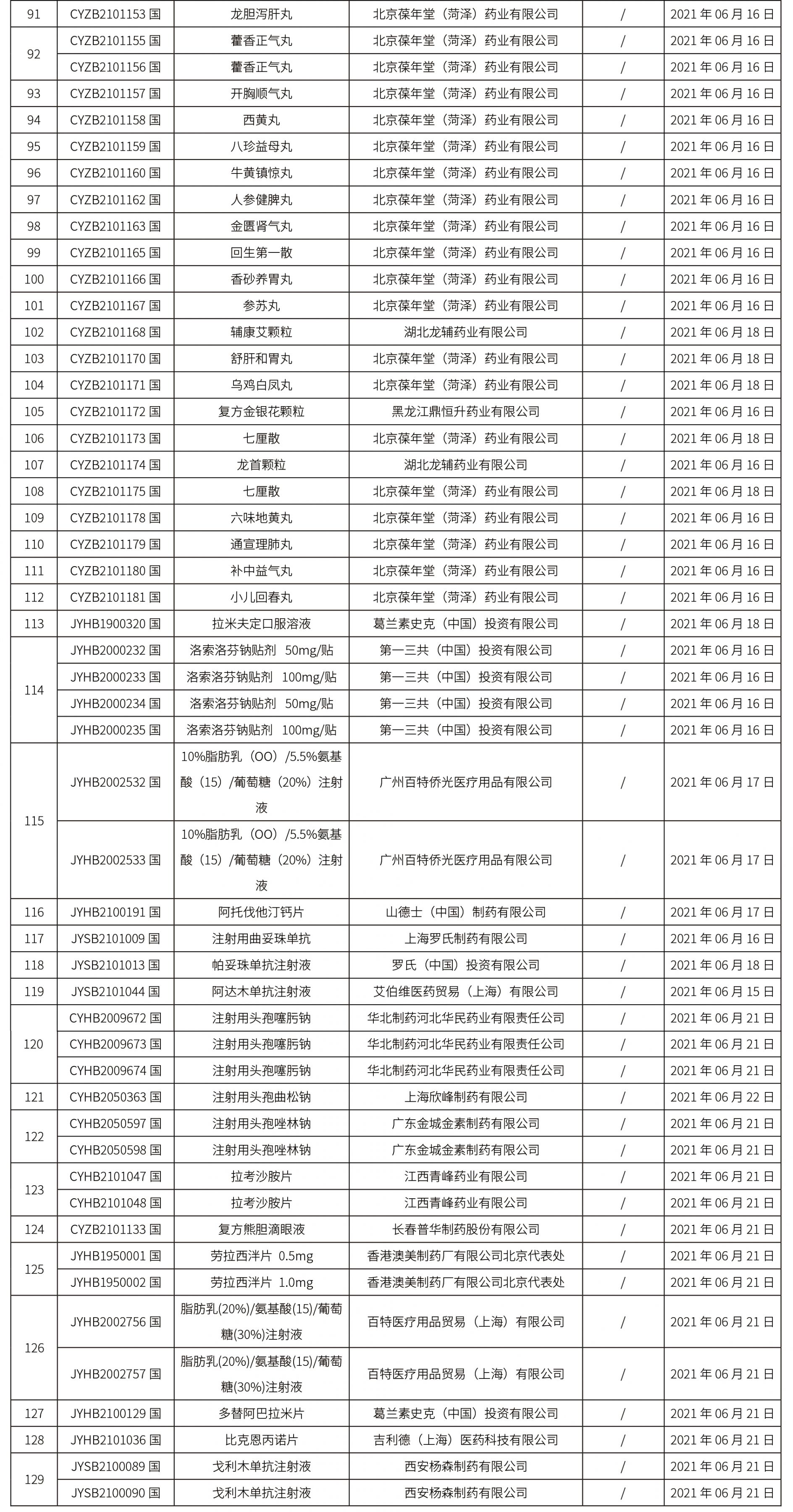 本周共計129個品種獲批取得藥品批準證明文件,其中一致性評價品種25個,注射劑品種38個。