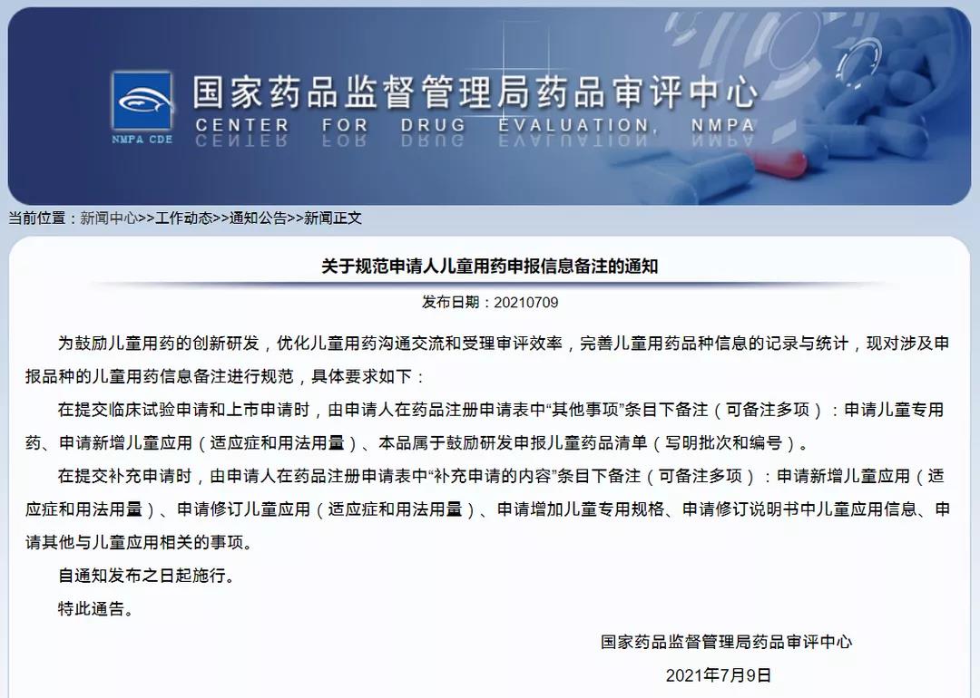 關(guān)于規(guī)范申請(qǐng)人兒童用藥申報(bào)信息備注的通知