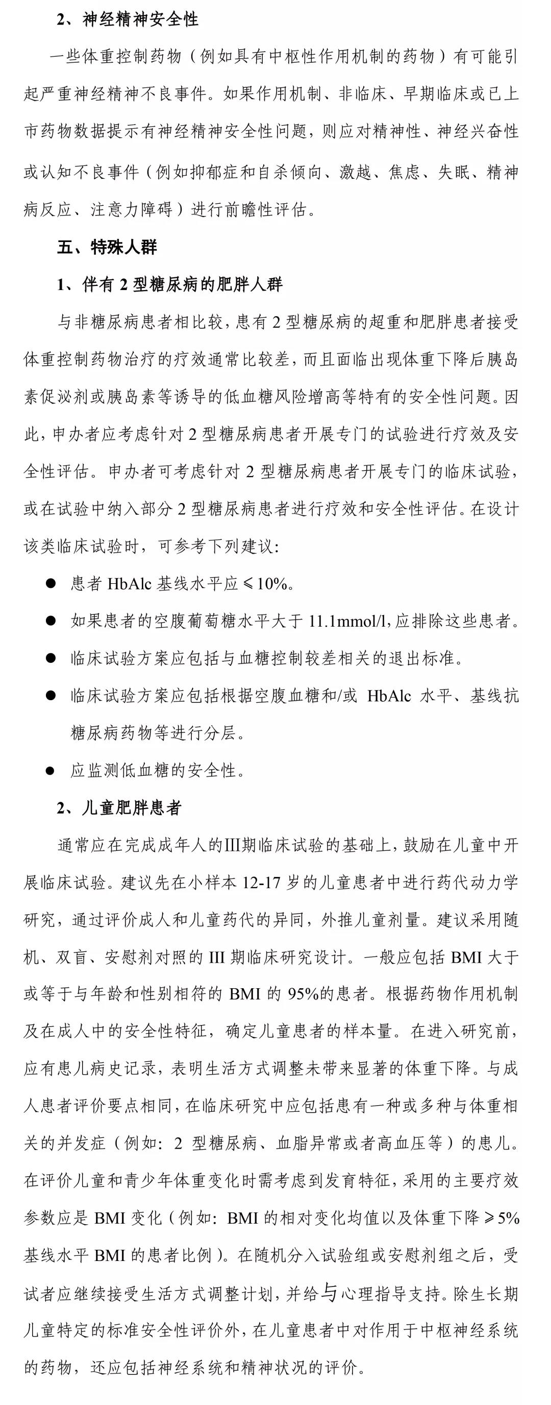 近年來(lái)國(guó)際上和我國(guó)體重控制藥物的研發(fā)逐年增多、成為研發(fā)活躍的治療領(lǐng)域,但目前國(guó)內(nèi)尚無(wú)體重控制藥物的臨床試驗(yàn)指導(dǎo)原則,為鼓勵(lì)和推動(dòng)體重控制藥物研發(fā),規(guī)范臨床研究設(shè)計(jì)和相關(guān)技術(shù)要求,CDE近期發(fā)布《體重控制藥物臨床試驗(yàn)技術(shù)指導(dǎo)原則》(征求意見(jiàn)稿),供企業(yè)和臨床研究單位參考。