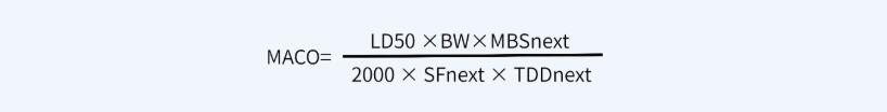其次,根據(jù)NOEL值計(jì)算MACO值: