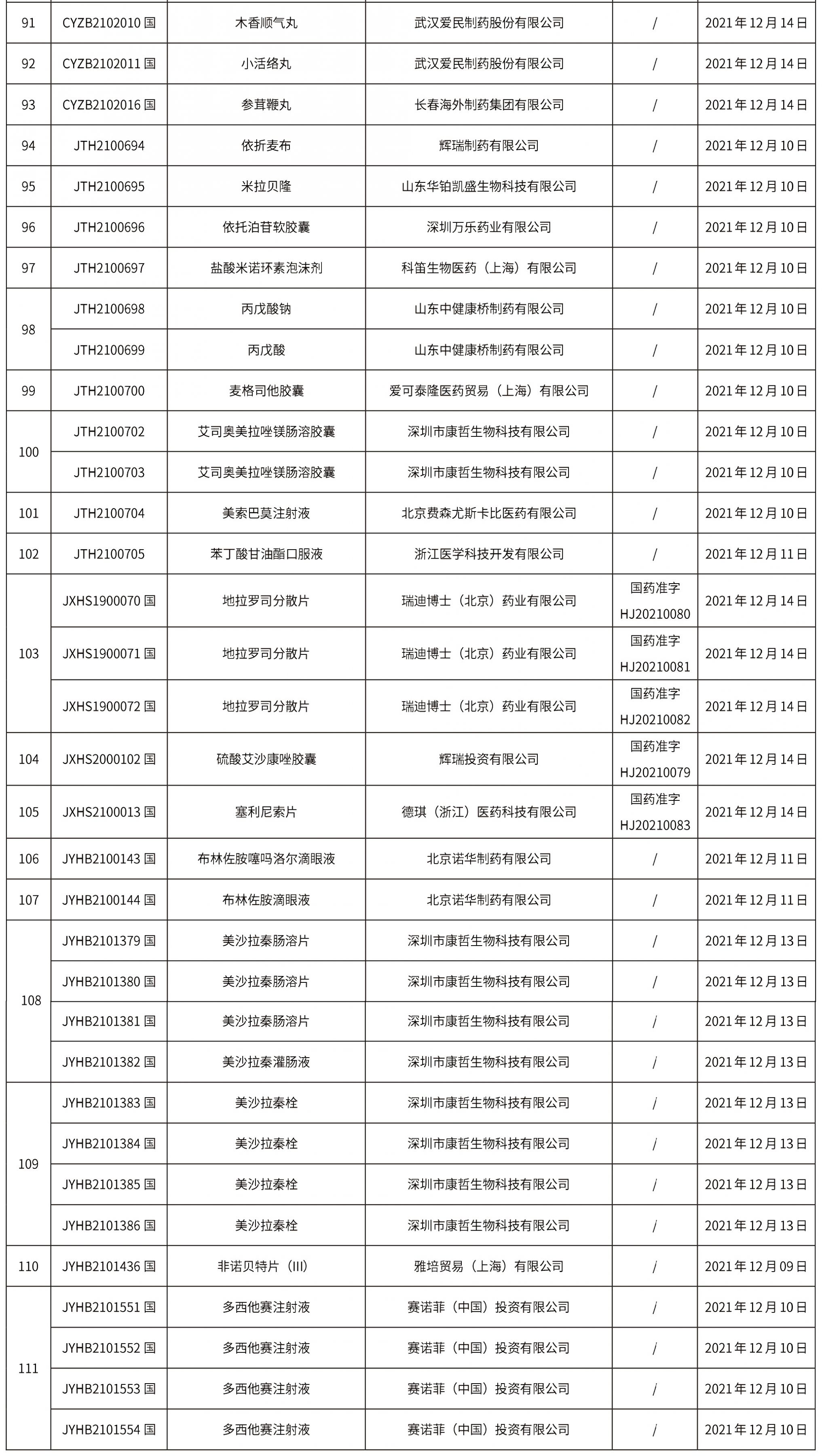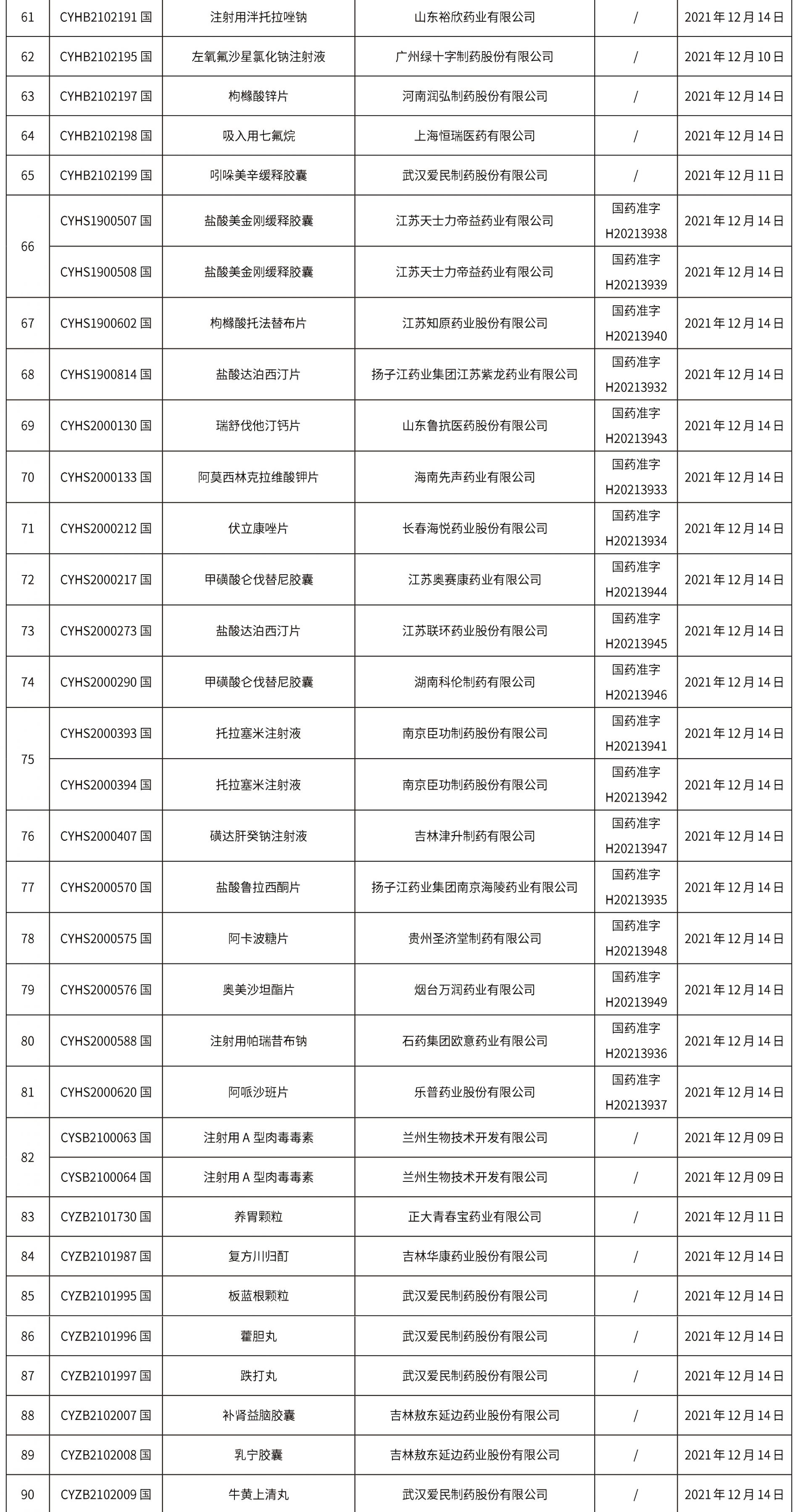 本周共計110個品種取得藥品批準證明文件,其中一致性評價品種11個,注射劑品種24個。