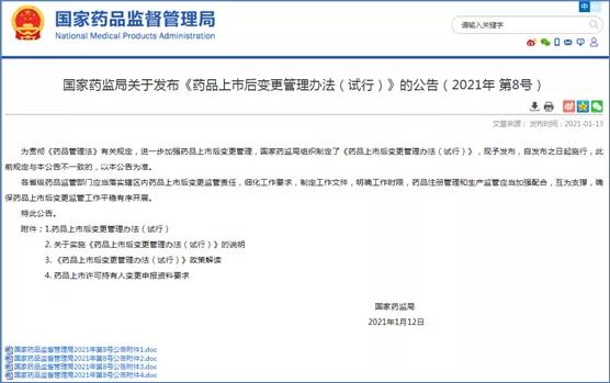 2021年,NMPA 及CDE陸續發布變更指導原則,涉及化藥、中藥及生物藥藥學/臨床變更研究、變更程序、變更受理審查指南。明確了變更研究內容,疏通了變更申報路徑。