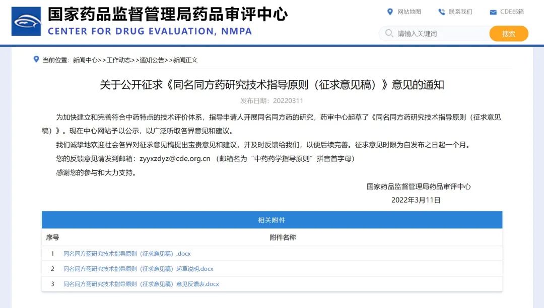 關(guān)于公開征求《同名同方藥研究技術(shù)指導(dǎo)原則(征求意見稿)》意見的通知