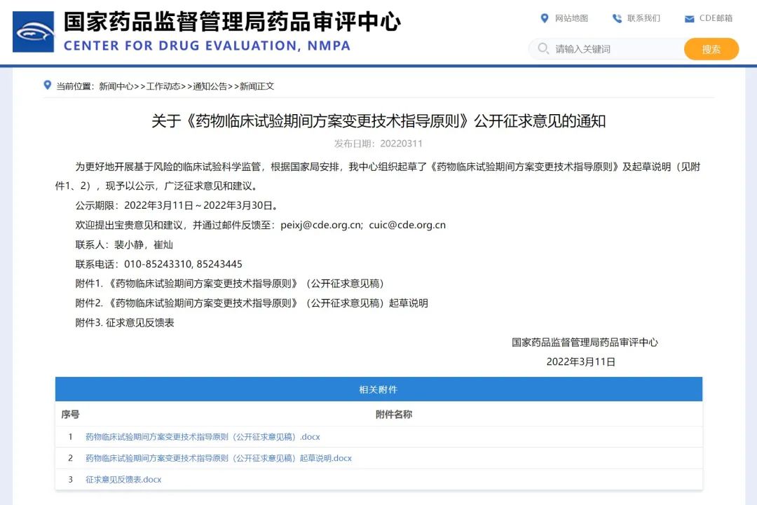 關(guān)于《藥物臨床試驗(yàn)期間方案變更技術(shù)指導(dǎo)原則》公開征求意見的通知