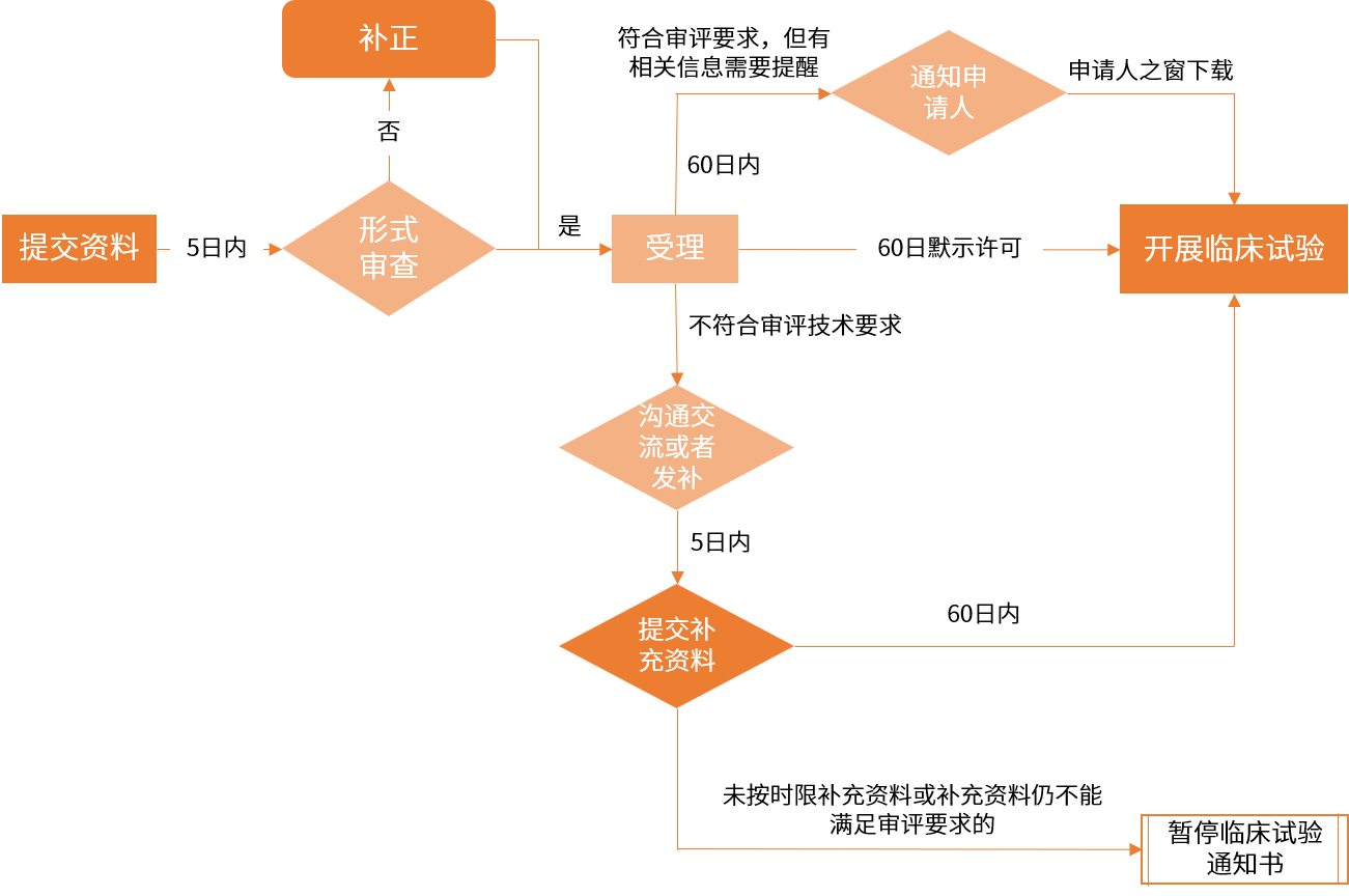 ※ 特別注意:對于技術指南明確、藥物臨床試驗有成熟研究經驗,申請人能夠保障申報資料質量的,或國際同步研發的國際多中心臨床試驗申請,在監管體系完善的國家和地區已經獲準實施臨床試驗的,申請人可不經溝通交流直接提出臨床試驗申請。