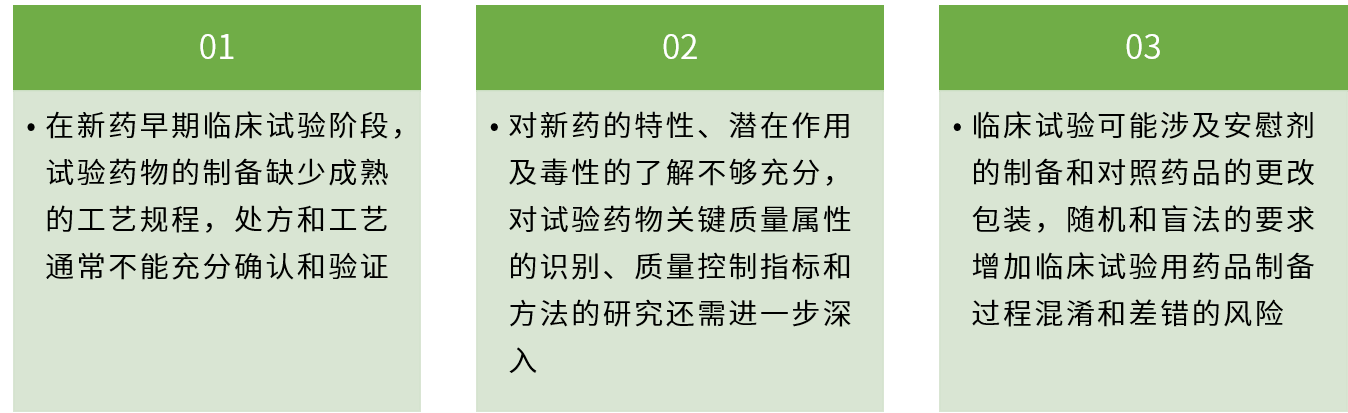臨床試驗用藥品質(zhì)量影響受試者安全和藥物臨床試驗結(jié)果,其制備的質(zhì)量管理應(yīng)當(dāng)遵循《藥品生產(chǎn)質(zhì)量管理規(guī)范》(簡稱GMP)相關(guān)基本原則,但也有其特殊性,見下圖。