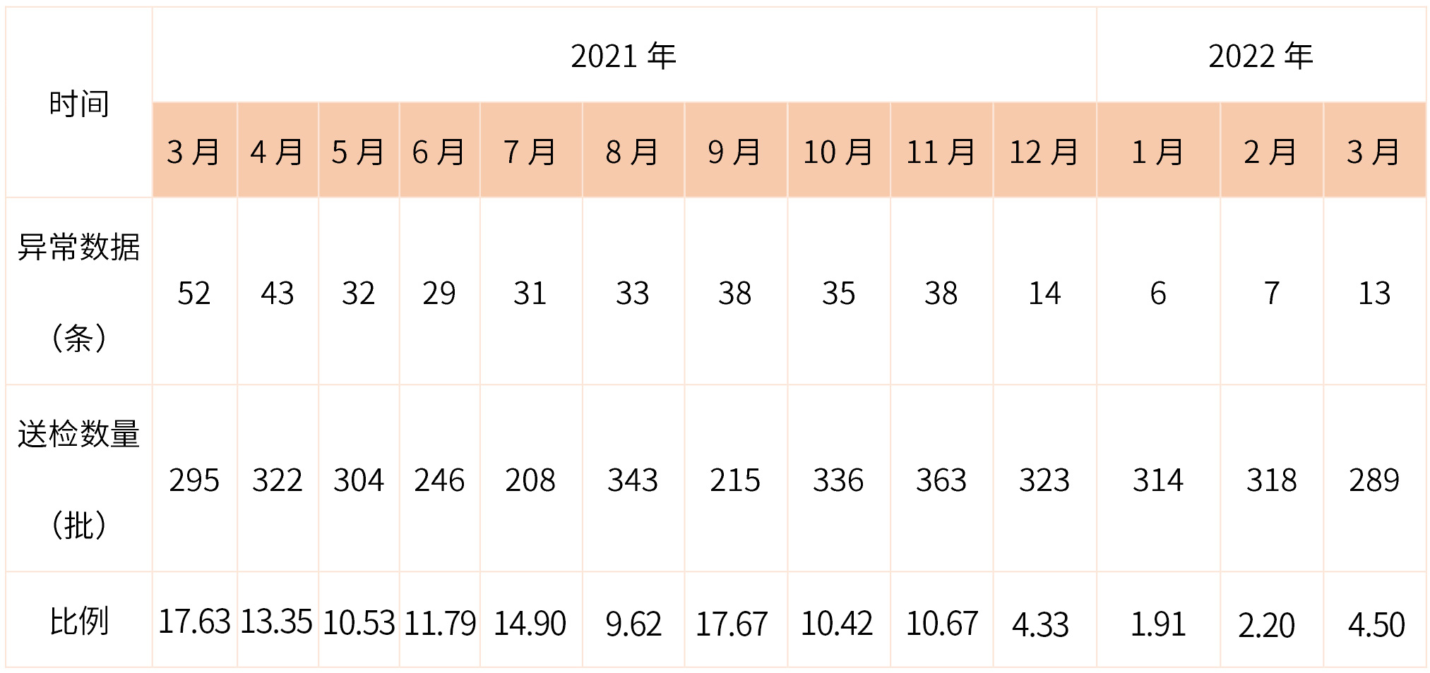 比例=異常數據/送檢數量