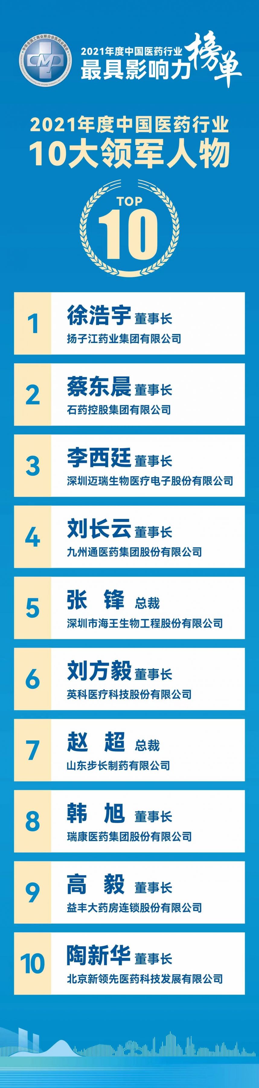 最具影響力榜單發(fā)布,陶新華董事長當選“2021年度中國醫(yī)藥行業(yè)10大領軍人物”