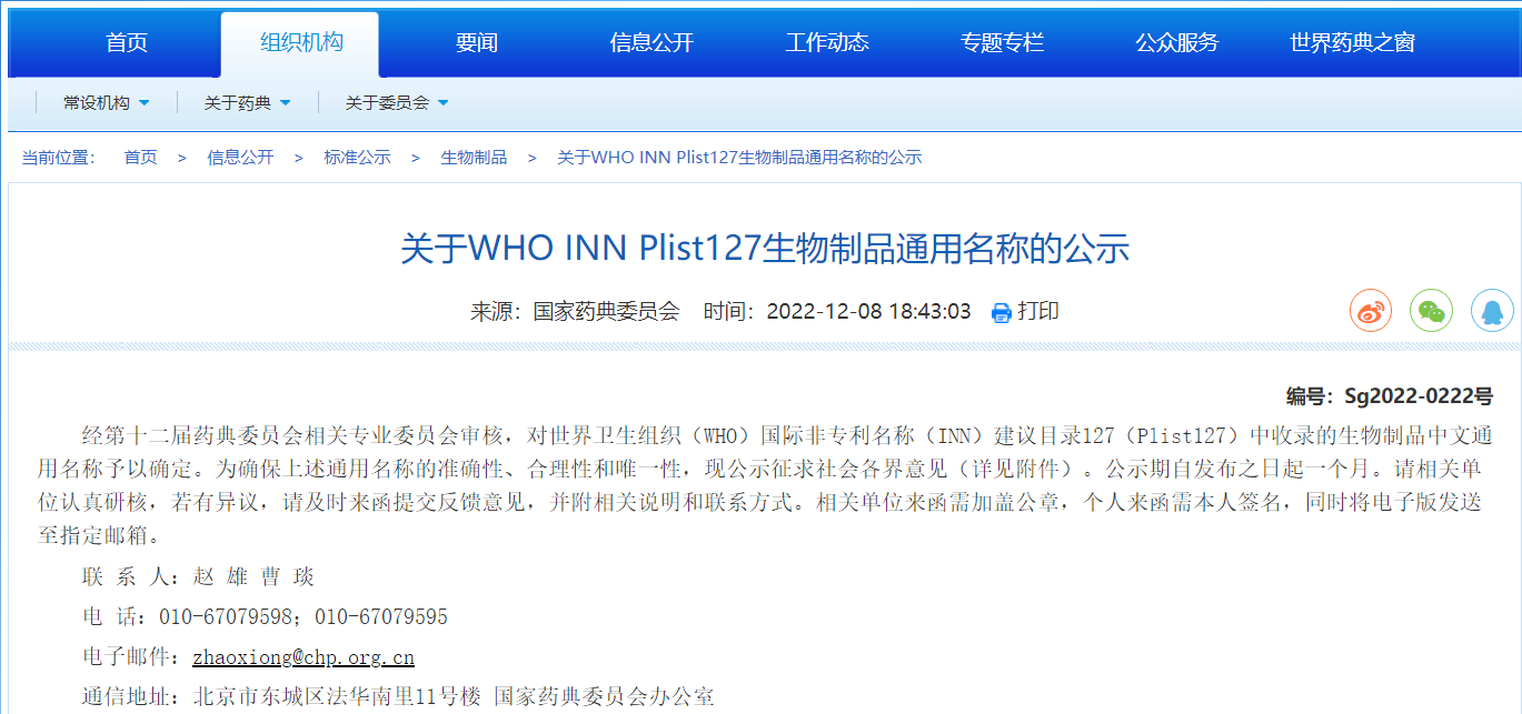 政策法規||WHO INN Plist127生物制品通用名稱予以公示(附法規概覽12.05-12.16)
