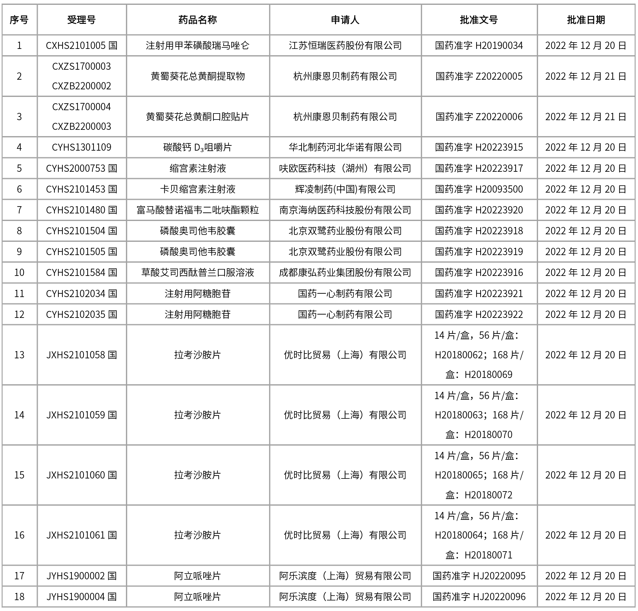 1. 本周(截止到12.23下午13:00)共發布了18個品規的藥品批準證明文件待領取信息,注射劑4個。