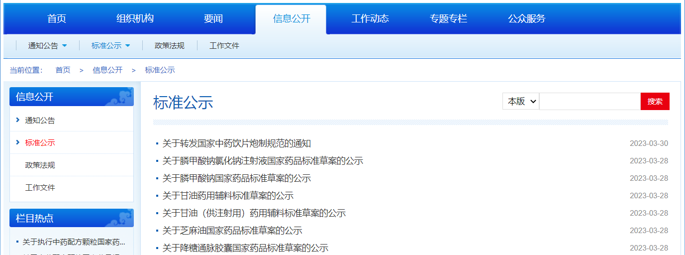 發(fā)布4個品種的國家藥品標(biāo)準(zhǔn)草案的公示,2種藥用輔料標(biāo)標(biāo)準(zhǔn)草案公示。