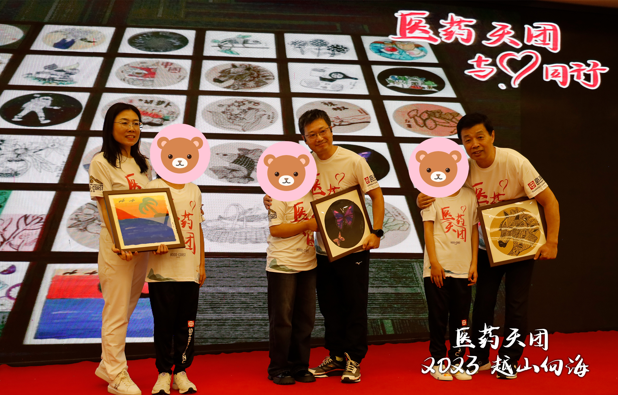 今年的越山向海,醫藥天團攜手臨汾紅絲帶學校,以“為愛撐傘”主題,將紅絲帶孩子的畫作印在了天團戰衣上,帶著孩子們的畫作與夢想一起奔跑。在終點展位上,醫藥天團還舉行了紅絲帶愛心捐贈活動,并向參與活動的愛心人士贈送紅絲帶孩子的繪畫作品。我們希望借助越山向海這項賽事,呼吁更多的人關注這群紅絲帶孩子,一起做孩子們的“撐傘人”!