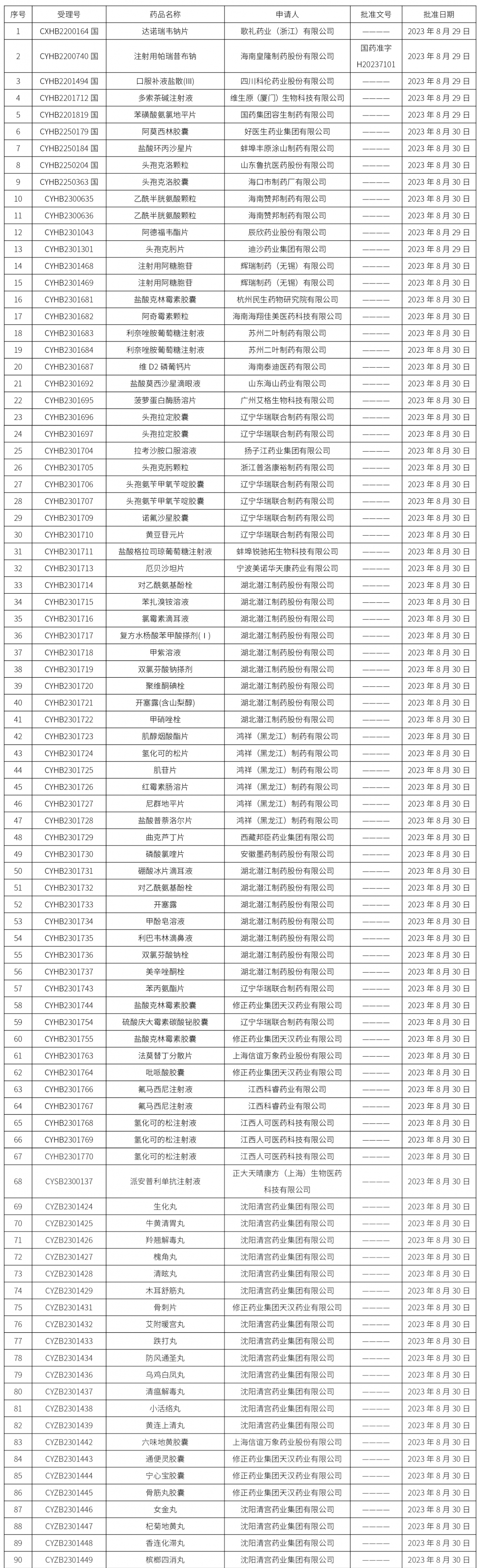 截止2023年9月8日 16:00本周發布228個待領取藥品批準證明文件,其中注射液23個,一致性評價品種20個。