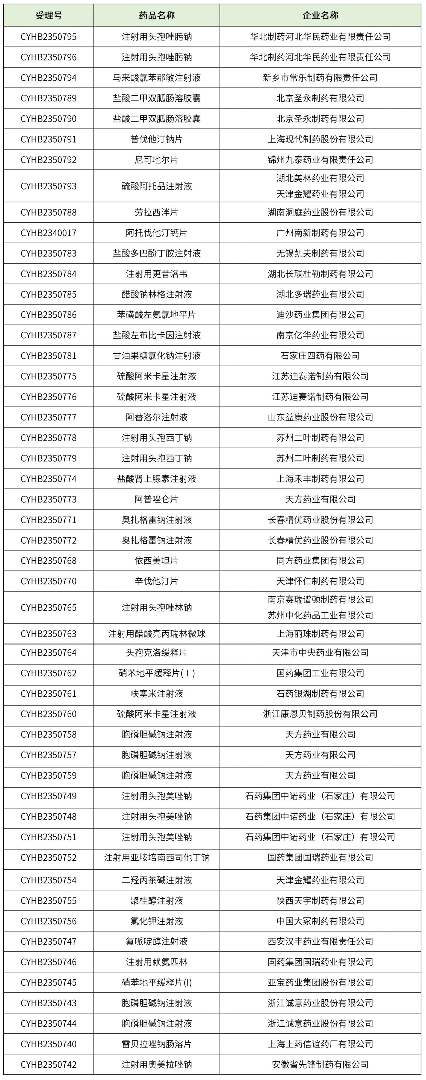 化藥一致性評價38個(注射用頭孢唑肟鈉、鹽酸二甲雙胍腸溶膠囊、鹽酸左布比卡因注射液、硫酸阿米卡星注射液、辛伐他汀片、胞磷膽堿鈉注射液、氟哌啶醇注射液、注射用賴氨匹林、注射用奧美拉唑鈉等),藥物詳細信息見下表。