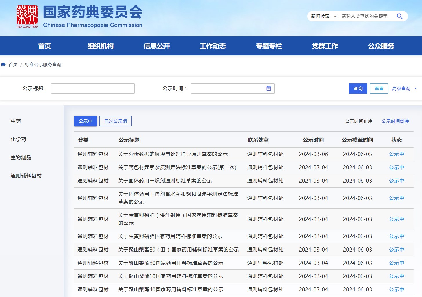 本周藥典委發(fā)布7種藥用輔料標準草案,1種指導原則草案,2種測定法標準草案等公示。