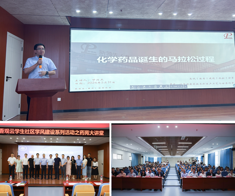 隨后,臨床試驗科普走進了重慶文理學(xué)院藥學(xué)院。新領(lǐng)先(重慶)副總經(jīng)理甘興杰以“化學(xué)藥品誕生的馬拉松過程”為主題,為學(xué)生們帶來了一場生動有趣的科普講座。甘總通過深入淺出的講解,讓同學(xué)們了解了新藥研發(fā)的艱辛與不易,同時也感受到了臨床試驗在新藥研發(fā)中的關(guān)鍵作用。講座結(jié)束后,甘總與學(xué)生們進行了互動交流,解答了同學(xué)們的疑問。