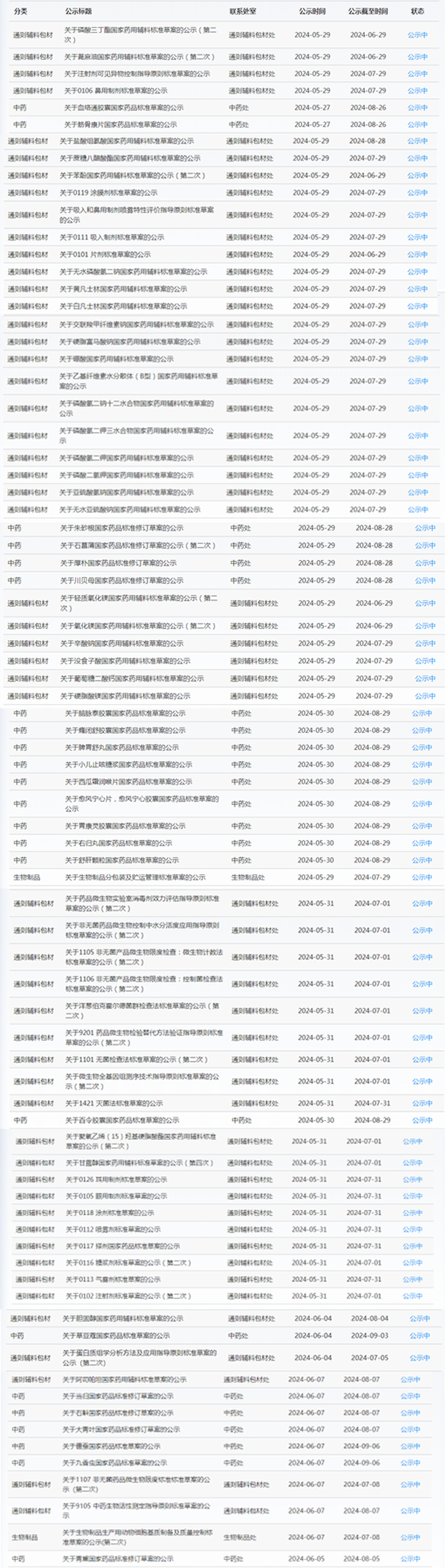 5月27日-6月7日,藥典委發(fā)布的標(biāo)準(zhǔn)草案公示如下: