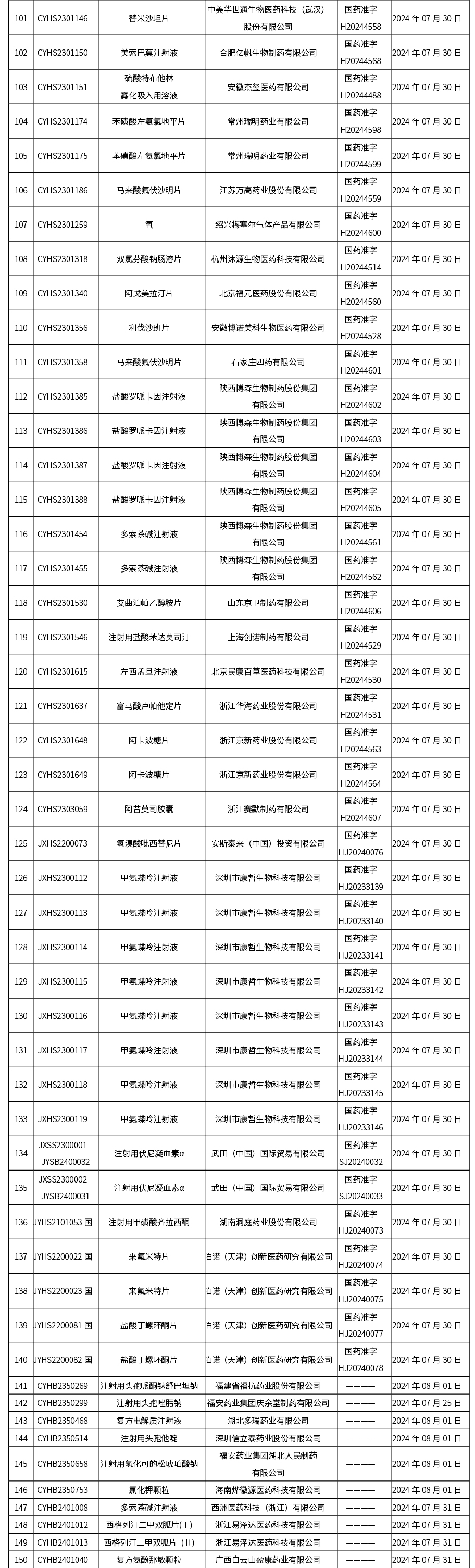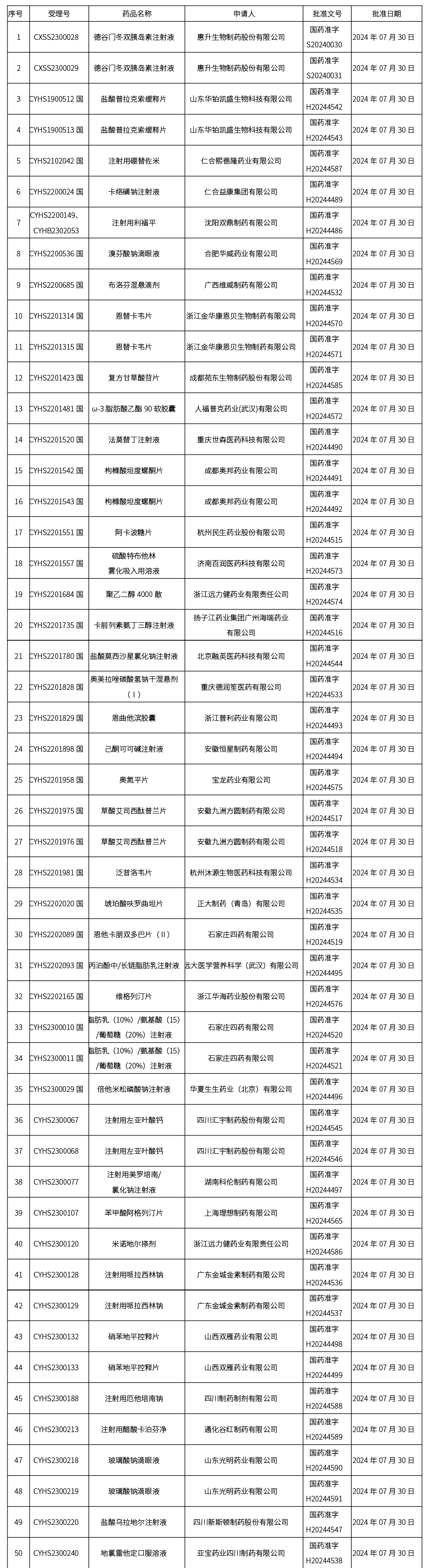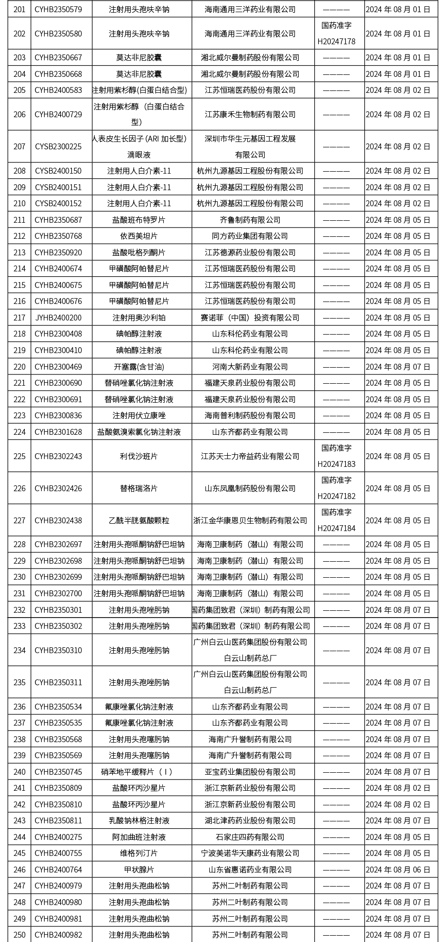 本周(截至2024年8月09日15:00),共發布藥品批準證明文件送達信息271個,其中一致性評價38個,注射劑118個。