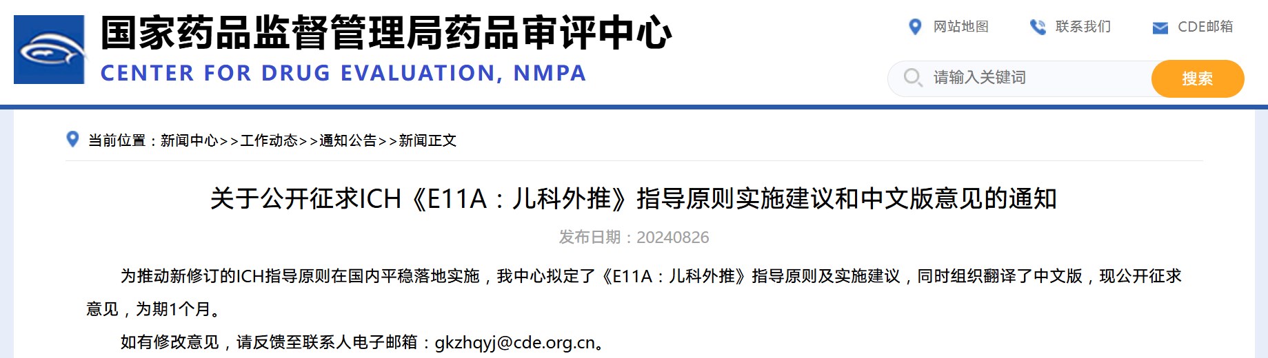 關于公開征求ICH《E11A:兒科外推》指導原則實施建議和中文版意見的通知