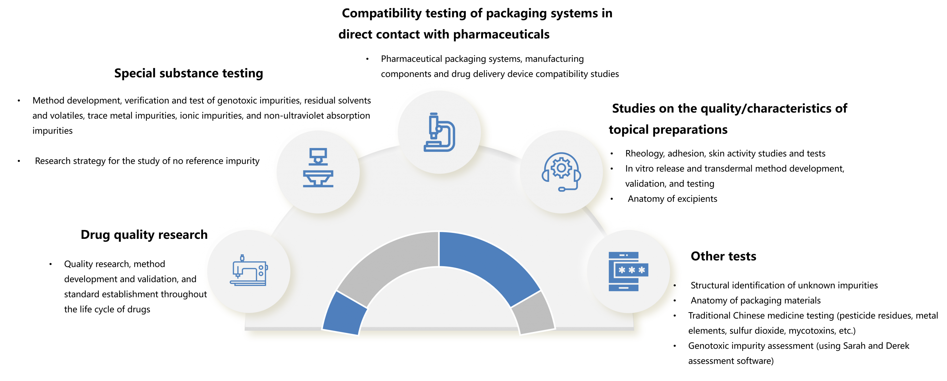 ♦Based on advanced testing equipment and perfect quality management system of Leadingpharm, the Analytical Testing Center can help the project team complete the development of complex compound testing methods, compatibility research (packaging materials, drug delivery devices, production components, etc.) and the detection of special impurities (elemental impurities, genotoxic impurities, gold ions, polymers, etc.).