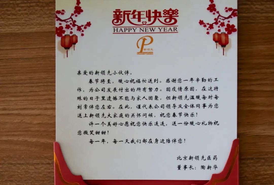 Adequate food, adequate money, Leadingpharm distributes New Year greeting cards and JD.COM shopping cards which worth 500 yuan to every employee who is unaccompanied by relatives and friends during the festival in Beijing.