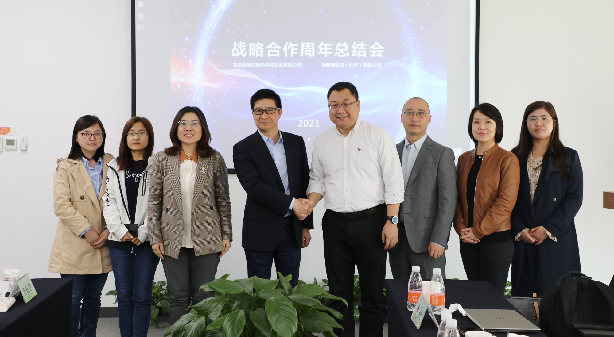 On April 6th, 2021, the annual summary meeting of strategic cooperation between Leadingpharm and HealthShare was successfully held. The two sides reviewed and summarized their work in the past year, and made plans and prospects for expanding cooperation in the second year. Leadingpharm’s chairman, Tao Xinhua, president Gao Shijing, president assistant and director of the Integrated Information Department and the General Management Department, Liu Fang, manager of the Planning Department, Wang Xin, vice president of Harbin Pharmaceutical Group, founder of HealthShare, Wang Haisheng, and co-founders of HealthShare Zhang Ran and Yang Yang attended the meeting.