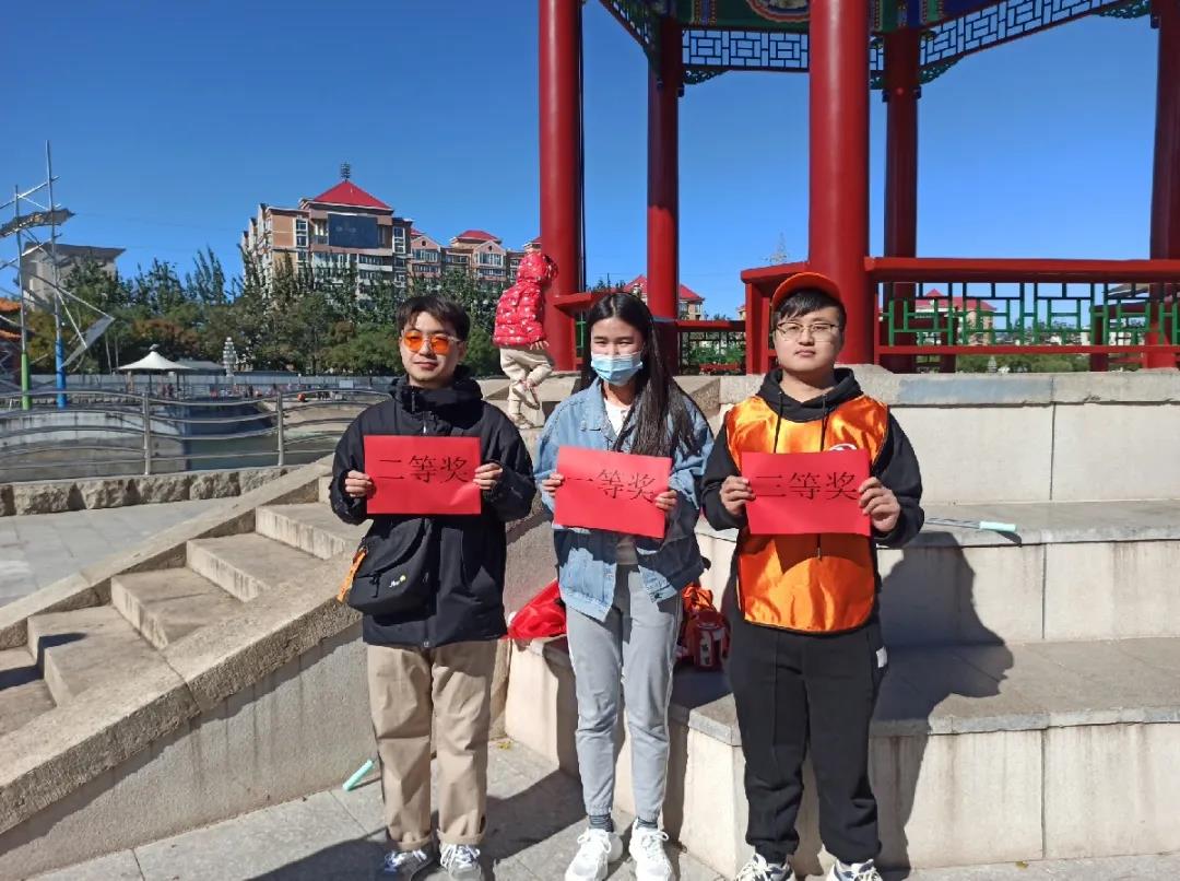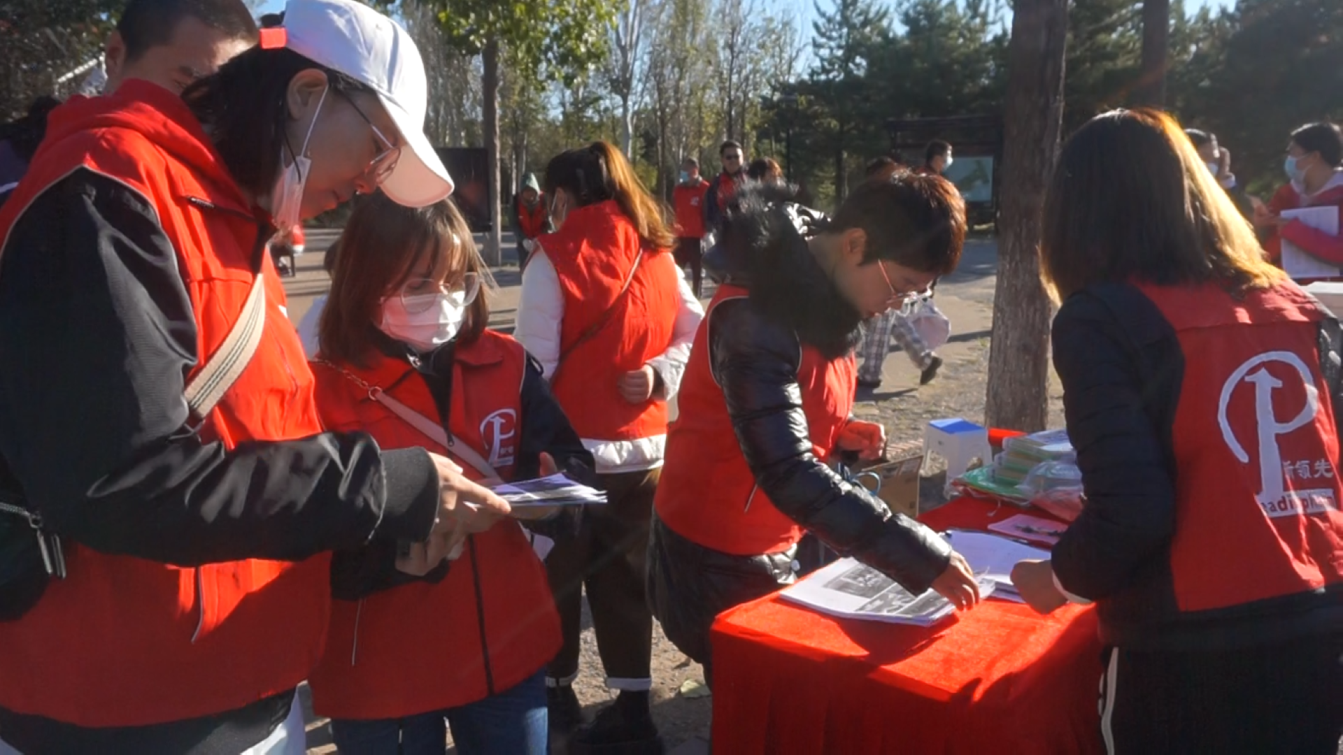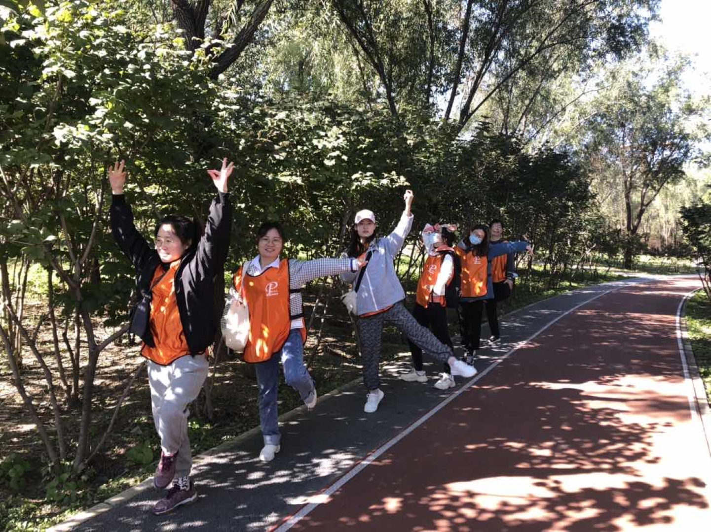 ▲ All team members hold high the team flag, listen to the autumn wind, step on fallen leaves, talk and laugh, and accompany their peers.